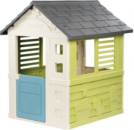 Domek disponuje prostorným interiérem se dvěma okny s pevnými žaluziemi, velkým zadním oknem a polovičními dveřmi. Ekologicky zaměřená linie Eko linie Smoby Life nabízející produkt z 59 % vyrobený z recyklovaných materiálů.
