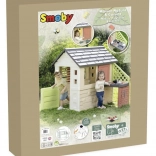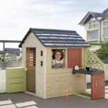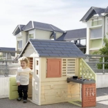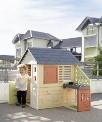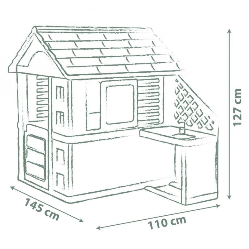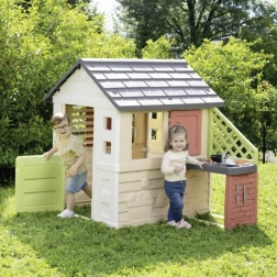 Smoby Nature je stabilní a odolný domeček navržený pro každodenní hraní na zahradě. Součástí je anexe s kuchyňkou s grilem a dřezem (atrapa) a bohaté příslušenství, díky kterému mohou děti rozvíjet svou fantazii a hrát si na malé kuchaře. Neutrální barvy zapadnou do každého exteriéru a povrch s ochranou ANTI‑UV brání blednutí na slunci.