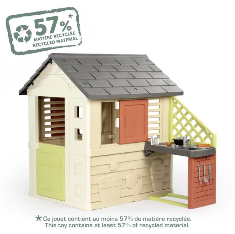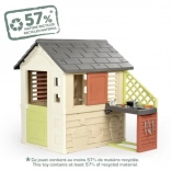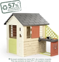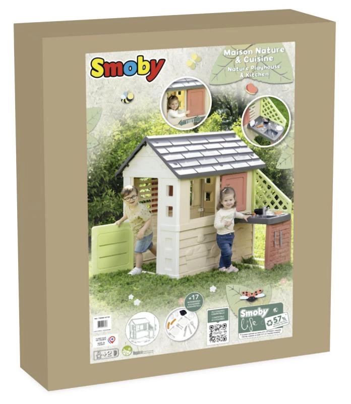 Domeček patří do ekologické řady Smoby Life, kde 57 % materiálu pochází z recyklátu. Promyšlené detaily, jako jsou reliéfní motivy květin a zvířátek, podněcují vnímání a tvořivost. Hra v domečku zároveň podporuje spolupráci, komunikaci a zdravý pohyb na čerstvém vzduchu.