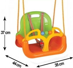 Houpačka 3v1 je skvělou volbou pro rodiče, kteří chtějí bezpečné a dlouhodobé řešení pro zábavu na zahradě i v interiéru. Díky modulárnímu systému lze snadno odejmout opěrku i přední zábranu na nohy, takže sedátko přizpůsobíte věku a dovednostem dítěte. Integrované pásy drží malého pasažéra pevně a pohodlně, zatímco pevné plastové materiály bez ostrých hran zajišťují bezpečí a snadné čištění.