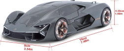 Kovové autíčko Bburago 1:24 je přesným modelem auta Lamborghini Terzo Millenio v elegantní šedé barvě, které nadchne každého sběratele a fanouška sportovních vozů.