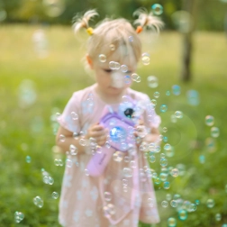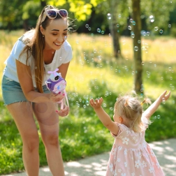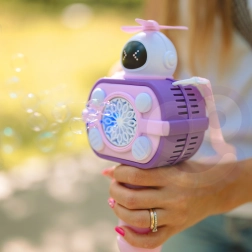 Stiskněte tlačítko a sledujte, jak mašina automaticky vytváří spoustu bublin. Ventilátorek je potom posílá daleko, což přináší hodiny zábavy.