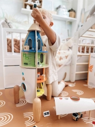 Tato detailně zpracovaná raketa skrývá až 12 tematických místností (např. sypárna, operační sál nebo laboratoř), které děti vybízejí k otevřené hře a vyprávění příběhů. Díky odnímatelným sekcím a interaktivním dílům se děti učí logice, trpělivosti a spolupráci.