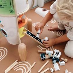 Hračka je vyrobena převážně ze dřeva, doplněna kvalitním plastem a ošetřena netoxickým lakem. Je odolná, esteticky zpracovaná a navržená pro dlouhodobé hraní v dětském pokojíčku. Podporuje představivost, kreativitu i jemnou motoriku.