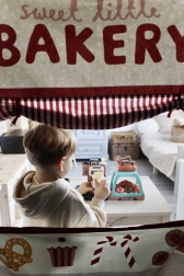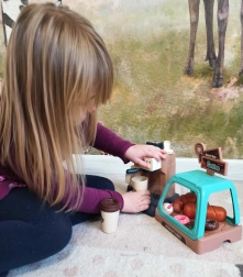 Díky možnosti modulárního použití (spojeně či odděleně) se set snadno přizpůsobí prostoru i fantazii dětí. Bohaté příslušenství s kelímky, „kávou“, cukrem, mincemi a bankovkami podněcuje komunikaci, počítání a obsluhu zákazníků v rámci hry.
