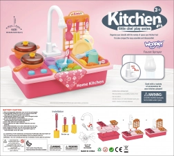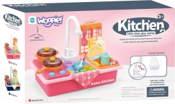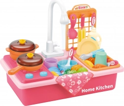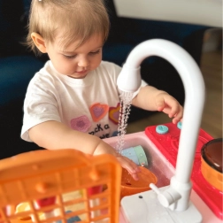 Hračka je ideální pro děti od 3 let a je vybavena celou řadou příslušenství, včetně hrnců, misek a různých plastových potravin. Dřez lze také využít k ukládání těchto doplňků, což přispívá k pořádku během hry a po ní. Celá sada je barevně sladěna do růžova a velmi zábavná díky živým barvám.