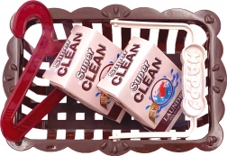 Sada obsahuje žehlicí desku, koš na prádlo, dva věšáky a dvě balení prášku na praní, poskytující komplexní hrací zážitek.