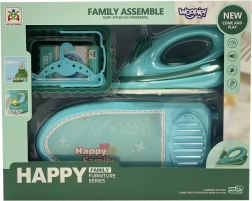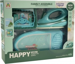 S touto hrací sadou Happy Family se děti ocitnou v roli malého domácího pomocníka. Hračka zahrnuje pestré funkce jako vodní rozprašování a světelné efekty. Součástí sady je i mini žehlicí prkno a další příslušenství, které povzbudí děti k imaginární hře.