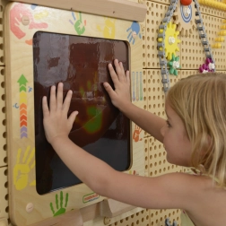 - Interaktivní zábava: Děti mohou sledovat a srovnávat otisky, které se tvoří na tabuli. Lze na ní kreslit pruhy a vzory.