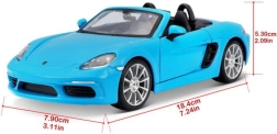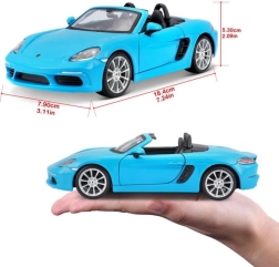 Tento realistický model Bburago Porsche 718 Boxster nadchne kvalitním kovovým zpracováním (die-cast), věrnými proporcemi a výraznou modrou barvou. Díky průhlednému displej boxu je ideální pro sběratelské vystavení, zároveň je však dostatečně odolný pro hraní od 3 let.