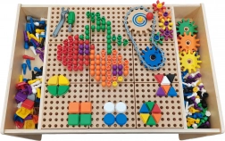 S ozubenými koly a řetězem děti pochopí principy pohybu a příčinných souvislostí. 128 kolíčků, 128 šroubků a 64 geometrických tvarů podněcují kreativitu i jemnou motoriku.