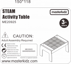 Se stolem Masterkidz STEM děti objevují svět techniky zábavnou formou. Perforovaná deska o rozměru 63 × 63 cm je připravena na vkládání kolíčků, šroubků a ozubených kol – od jednoduchých mozaik až po točící se převody s řetězem. Bohatá sada dílů a nářadí podporuje kreativitu, trpělivost i týmovou spolupráci.