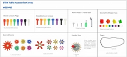 - stůl, 128 barevných kolíčků, 128 barevných šroubků, 64 geometrických kolíků, 2 sady nářadí (klíč, šroubovák s výměnnými bity – 12 dílů), 20 ozubených kol, 1 držák kola, řetěz
