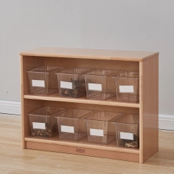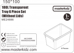 Boxy jsou kompatibilní se speciálním regálem MASTERKIDZ (ME13095), který pojme až 12 nádob a umožní přehledné uložení na policích nebo přesun celé sady na vozíku. Bezvíčkové provedení usnadňuje dětem samostatnou manipulaci a zrychluje úklid i přípravu na další aktivitu.