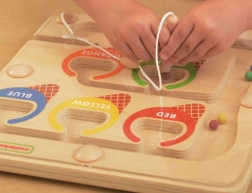 Jasně označené barevné zóny a kuličky v pěti barvách vedou děti k přirozenému rozpoznávání a třídění barev.