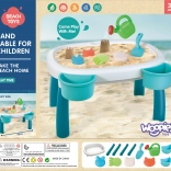 Součástí balení je 7 praktických doplňků – konev, lopatka, 4 formičky (ochořice, kočka, panda, králíček) a dva zásobníčky do stolku. Díky nim mohou děti tvořit pískové stavby, přelévat vodu a rozvíjet tvořivost a manuální dovednosti.