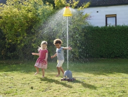 Klobouk postřikovače vystřeluje vodu, čímž vytváří efektní vizuální podívanou a zajišťuje osvěžení i během nejteplejších dnů.