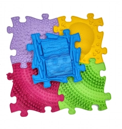 Tato ortopedická senzomotorická podložka je doporučována značkou Woopie a je ideální pro rozvoj motorických dovedností vašeho dítěte. Skládá se z 5 elementů s různými tvrdými a měkkými strukturami, které napomáhají rovnováze a stabilitě během tréninku. Tyto podložky mohou být také skvělým doplňkem do jiných setů z této série. Používání podložky stimuluje smysly, masíruje nohy a pomáhá předcházet problémům jako je plochá noha.