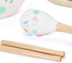 Tento set obsahuje pět různých hudebních nástrojů, které skvěle padnou do malých dětských rukou. Každý nástroj je vyroben z kvalitního dřeva a pomalován netoxickými barvami, které jsou bezpečné pro děti i životní prostředí.