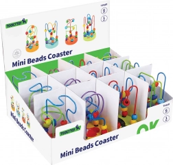 Hračka je vyrobena z kvalitních, bezpečných materiálů – dřevěná základna, kovové drátky a korálky z odolného materiálu (nejsou dřevěné). Velké, zaoblené korálky se dobře drží i nejmenším dětem a rozdílné křivky drátků přinášejí různé úrovně obtížnosti. Cena za 1 kus; barvy a motivy jsou vybírány náhodně.