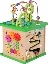 - 5 v 1 (motorický labyrint, tvarový sorter, ozubená kolečka, otáčecí prvky, posuvný labyrint se zvířátky)