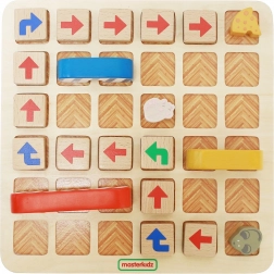 Dřevěná logická hra Masterkidz děti hravou formou seznamuje s principy programování. Pomocí barevných šipek a „instrukcí“ vedou myšku k sýru, přitom trénují logické myšlení, řešení problémů, prostorovou orientaci a koordinaci oko–ruka. Skvělý základ pro první krůčky v programování už od předškolního věku.