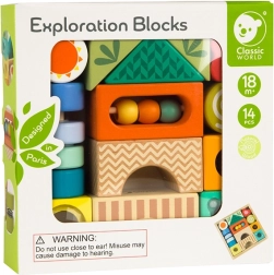 Objevte kreativní svět s dřevěnými senzorickými kostkami od Classic World. Tento 14dílný montessori set podporuje jemnou motoriku, prostorové vnímání, kreativitu a základy STEM. Barevné tvary s různými funkcemi lákají k explorativní hře, třídění a stavění, přičemž netoxické barvy a odolné dřevo zaručují bezpečné hraní. Součástí je dřevěný rámeček pro přehledné uložení.
