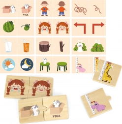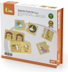 Dětská hračka od 18 měsíců zaujme hrou na spojování protikladů. V balení najdete 24 dílků s obrázky, ze kterých lze vytvořit 12 párů. Sada je vyrobena z kvalitního dřeva, což zajišťuje její trvanlivost.