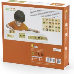 Každý dílek puzzle je vyroben z trvanlivého dřeva, což zajišťuje dlouhou životnost a bezpečnost pro děti.