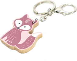 Dřevěný přívěsek má motiv lišky v jemných růžových a bílých barvách, což z něj dělá kouzelný doplněk vašich klíčů.
