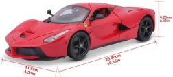 Detailně zpracovaný model auta v měřítku 1:18 přináší ikonické FERRARI LaFerrari v atraktivní červené barvě. Model kombinuje kovové a plastové díly, má otevírací dveře, přední i zadní víko a natáčecí, odpružená kolečka pro realistický zážitek. Ideální pro sběratele i milovníky sportovních aut.