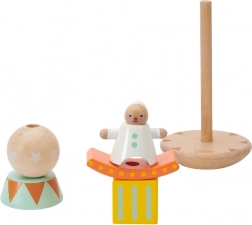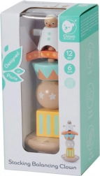 Dřevěná skládačka Klaun Balancér nabízí jedinečnou kombinaci učení a zábavy pro nejmenší. Děti mohou jednotlivé dřevěné dílky skládat na stojánek tak, aby klaun byl nahoře jako akrobat: