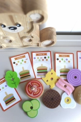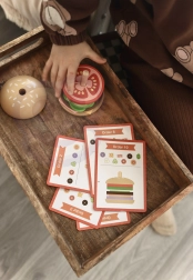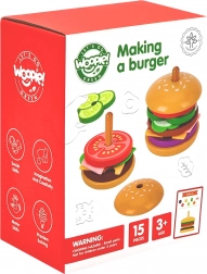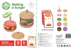 WOOPIE GREEN dřevěná burger skládanka přináší dětem od 3 let chutnou porci učení i zábavy. Podle instrukčních karet malí kuchaři vyberou správné ingredience, porovnají jejich barvu a tloušťku a naskládají je ve správném pořadí. Stejně snadno mohou tvořit i vlastní „recepty“, které rozvíjejí kreativitu a představivost.