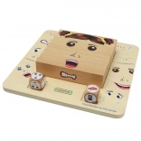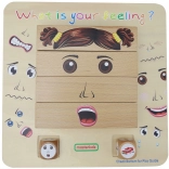 Čtyři dřevěné bloky umožňují dětem skládat až 64 různých mimik, které názorně ukazují radost, smutek, strach či zlost a učí, jak výraz tváře mění význam emocí.