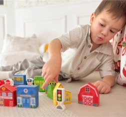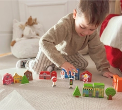 Dřevěná sada město TOOKY TOY přináší pestrý svět plný fantazie a učení. Postavte si vlastní malé městečko s budovami a postavičkami, rozvíjejte kreativitu, společenské dovednosti a jemnou motoriku. Kvalitní dřevo a netoxické barvy zajišťují bezpečnou hru a dlouhou životnost.