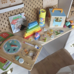 Tento bohatý vzdělávací box spojuje oblíbené montessori aktivity do jednoho promyšleného celku. Děti si procvičí jemnou motoriku, trpělivost, balanc a soustředění, ale i poznávání čísel a počasí. Součástí je také stručný rodičovský průvodce s tipy, kdy a jak jednotlivé pomůcky zavádět do hry.