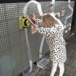 Děti si vyzkouší, jak funguje tlak a proudění vody v trubicích – zábavně, bezpečně a s okamžitým vizuálním efektem.