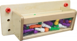 Udržujte pracovní plochu na STEM tabuli přehlednou a organizovanou. Dřevěný zásobník s průhlednou stěnou umožní dětem i dospělým rychle vidět a vybrat potřebné kolíky, šroubky i šňůrky MASTERKIDZ, aniž by museli sahat do vzdálených boxů. Montuje se přímo na tabuli, takže vše důležité máte vždy na dosah.