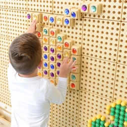 Destičky s kolíčky zaručují rychlou montáž i demontáž na kompatibilních pegboardech – ideální pro malé dětské ruce.