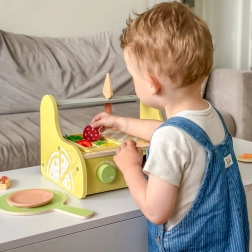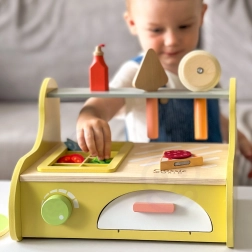 Díky bohatému příslušenství děti trénují jemnou motoriku, logiku při skládání i sociální dovednosti při společném vaření a servírování. Hračka je vyrobena z certifikovaného dřeva FSC a bezpečných materiálů, které jsou šetrné k dětem i přírodě.