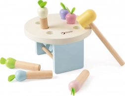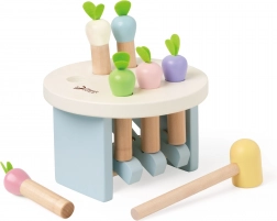 Delikátní pastelové barvy přitahují pozornost a zvyšují zájem dítěte o hračku. Hra spočívá v tréninku zručnosti dětí tím, že přesně zatloukají mrkve, které vyskočí z otvoru.