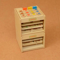 Dřevěná skříňka Masterkidz nabízí praktické a ekologické úložné řešení pro vaše výukové tabule. Díky své kapacitě až tří tabulí velikosti 28 x 28 cm je ideální pro organizaci malých sbírek. Na vrcholu skříňky lze umístit další tabuli, a pokud potřebujete větší kapacitu, můžete jednoduše přidat druhou skříňku na vršek.