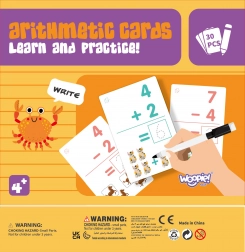 Set byl navržen tak, aby dítě mohlo opakovaně trénovat počítání díky přiloženému stíratelnému markeru. Karty jsou rozděleny na ty s odčítáním a přičítáním. Pro usnadnění učení karty obsahují dvě úrovně - začít lze se stranou, kde matematické úkoly doplňují obrázky, které mohou dítěti pomoci při výpočtu výsledku. Druhá strana karet nabízí výpočty bez pomoci obrázků. Díky tomuto učebnímu modelu vaše dítě neucítí tlak obtížnosti nové látky, a řešení matematických příkladů bude čistá radost! Pro motivaci vašeho dítěte ke studiu lze po každém správně řešeném příkladu nakreslit do rohu karty srdíčko.