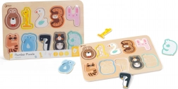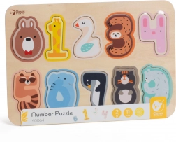 Dřevěná puzzla na učení číslic od značky Classic World je ideální volbou pro děti od dvou let. Pomáhá rozvíjet koordinaci oka a ruky a učí děti čísla a tvary zvířat skrze zábavu a interakci.