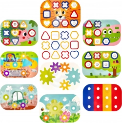S tímto boxem se děti mohou těšit na 12 různých aktivit v jednom kompaktním balení – od skládání vzorů, učení tvarů a barev, až po stavění 3D konstrukcí. Všechny části lze snadno uskladnit uvnitř, což usnadňuje kompaktní přenosnost a organizaci. Tento produkt je vyroben z přírodního dřeva a má zaoblené hrany pro maximální bezpečnost.