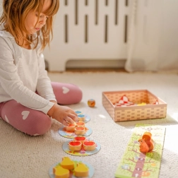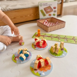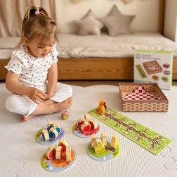 Hra podporuje raný rozvoj a učí děti spolupracovat místo soupeření. Díky jednoduchým pravidlům a pevným dřevěným komponentům si ji užijí malí hráči od 18 měsíců, ale pobaví i starší sourozence a rodiče.