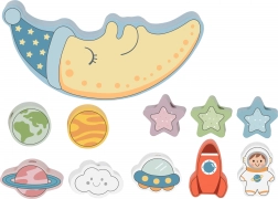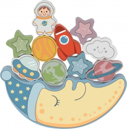 Děti mohou skládat vesmírné bloky na spící měsíček a rozvíjet svou přesnost a trpělivost.