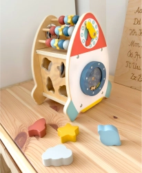 Dřevěná raketa je multifunkční hračka, která nabízí šest různých aktivit pro rozvoj dovedností dětí: