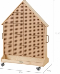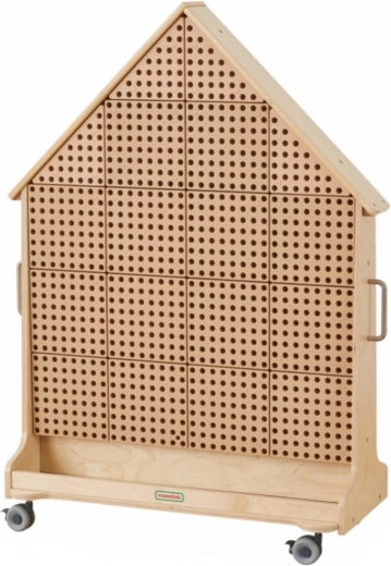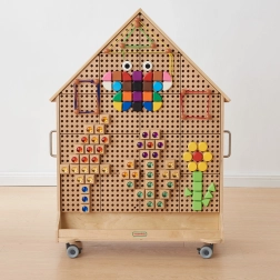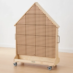 Objevte zábavný vstup do světa STEM s touto volně stojící dřevěnou tabulí ve tvaru domu. Díky kolečkům s brzdou ji snadno přesunete, oboustranné provedení umožní pracovat více dětem najednou a povrch je odolný vůči UV, skvrnám a poškrábání. Tabule podporuje mechaniku, fyziku, matematiku a kreativní konstrukce pomocí kolíčků, šroubů, ozubených kol a dalších prvků.