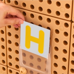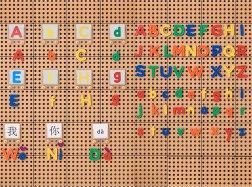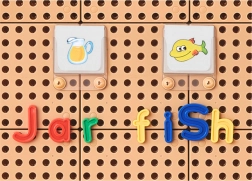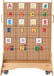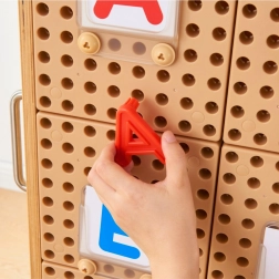 Písmena s kolíčky snadno zasunete do perforovaných panelů. Taktický i vizuální podnět podporuje zapamatování, fonematiku a správnou orientaci písmen.